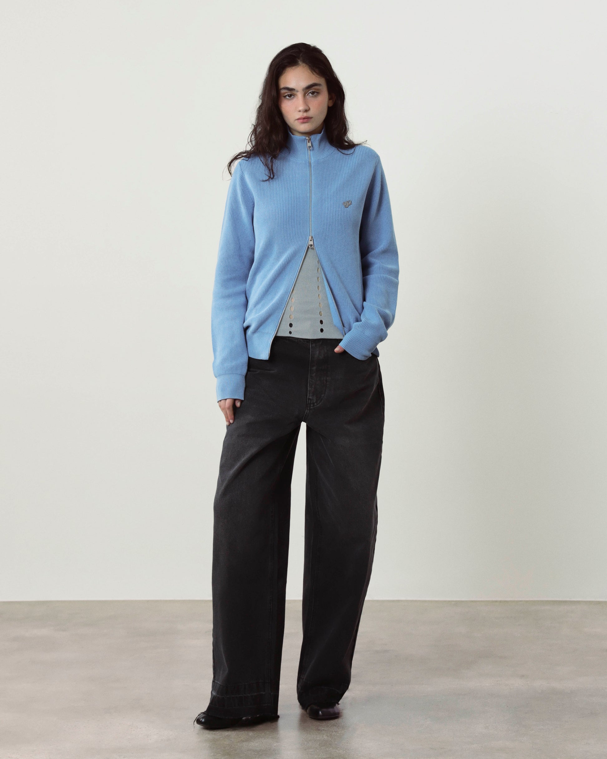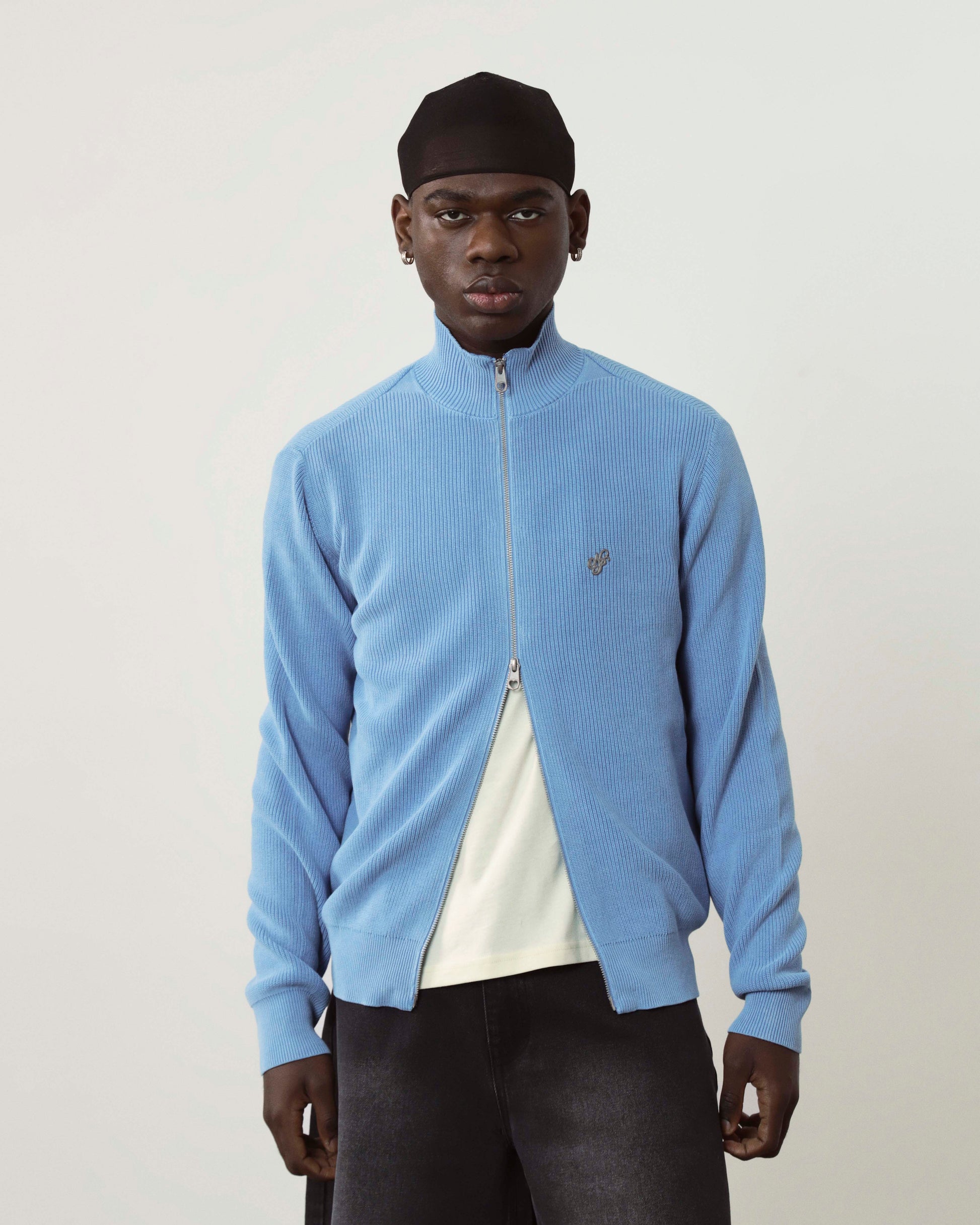 Shady Zip-Up Knit Cardigan Blue